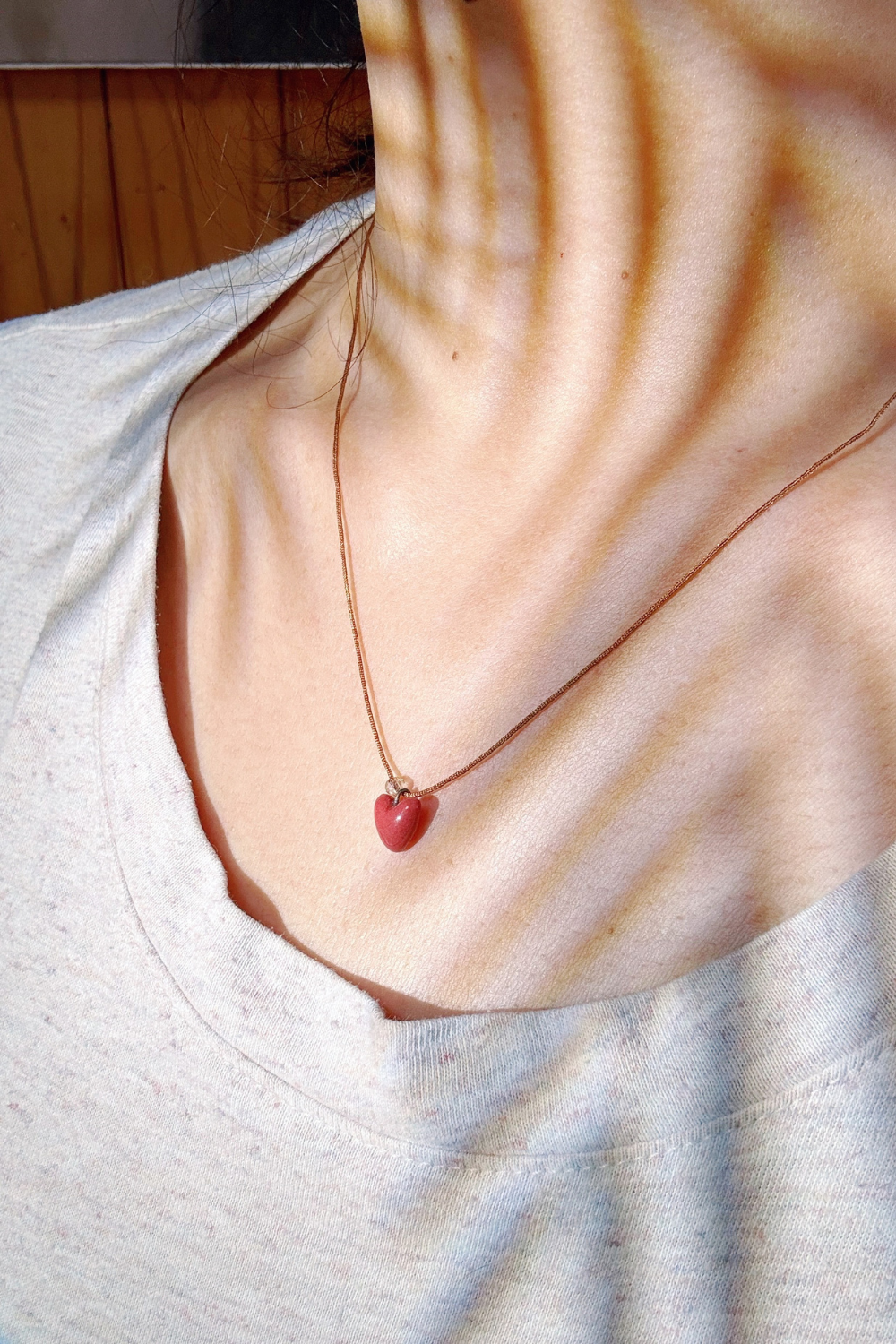 Corazón hecho a mano en cerámica vidriada de alta temperatura. Un punto de color para el stack de tus collares o para llevarlo solo como un detallito.
