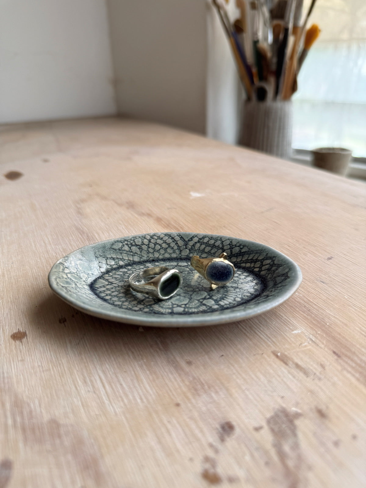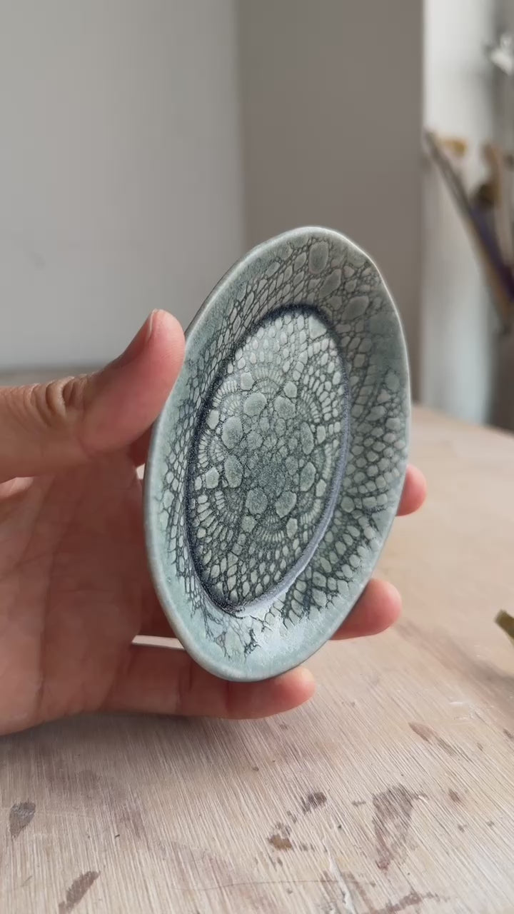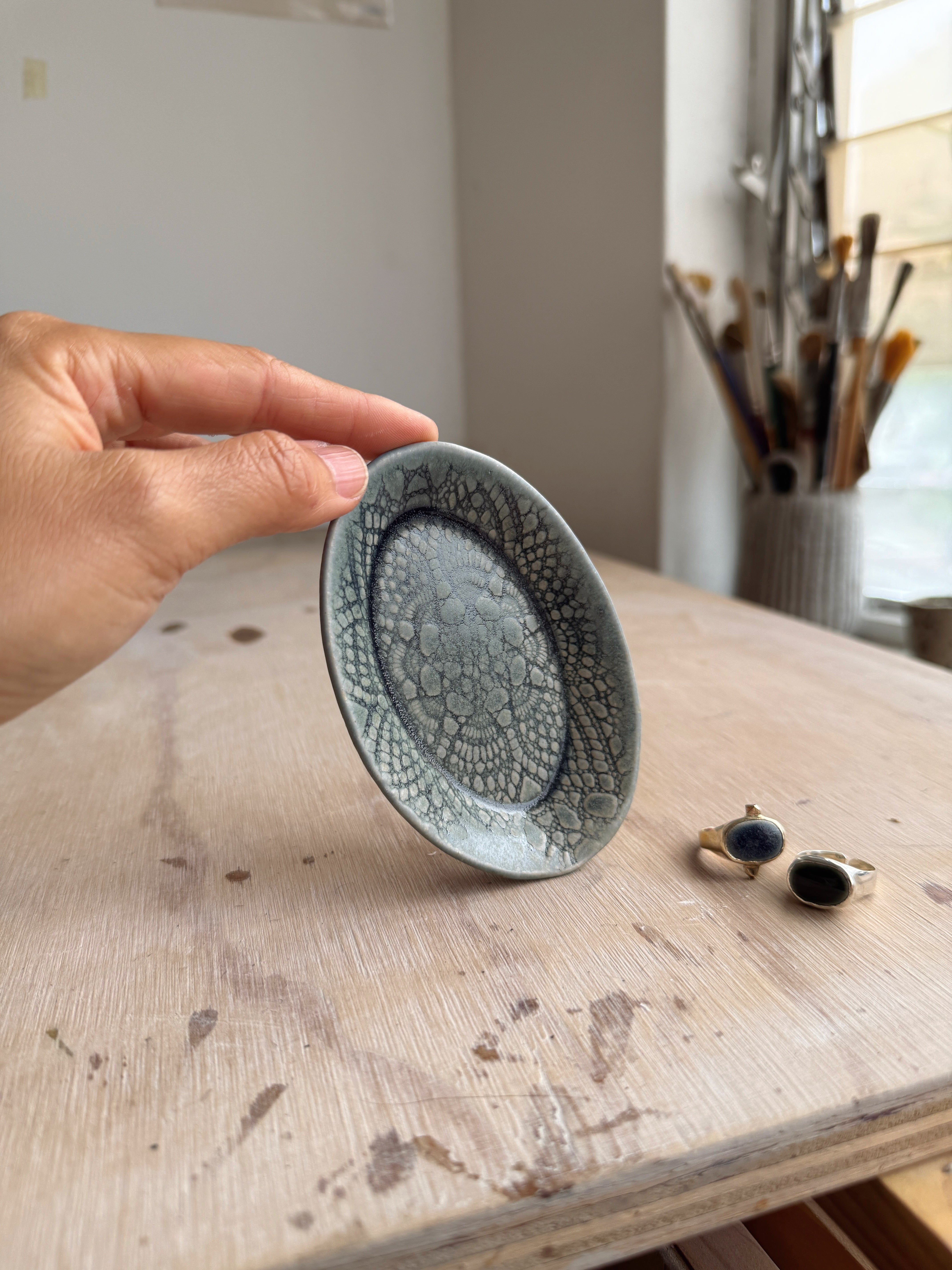 Un pequeño detalle para almacenar tus tesoros. Hecho a mano en técnica de placas y bajo relieve de encaje.