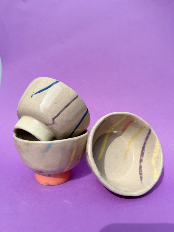 Bowl hecho a mano en cerámica gres en técnica de planchas e inlay de pastas coloreadas.